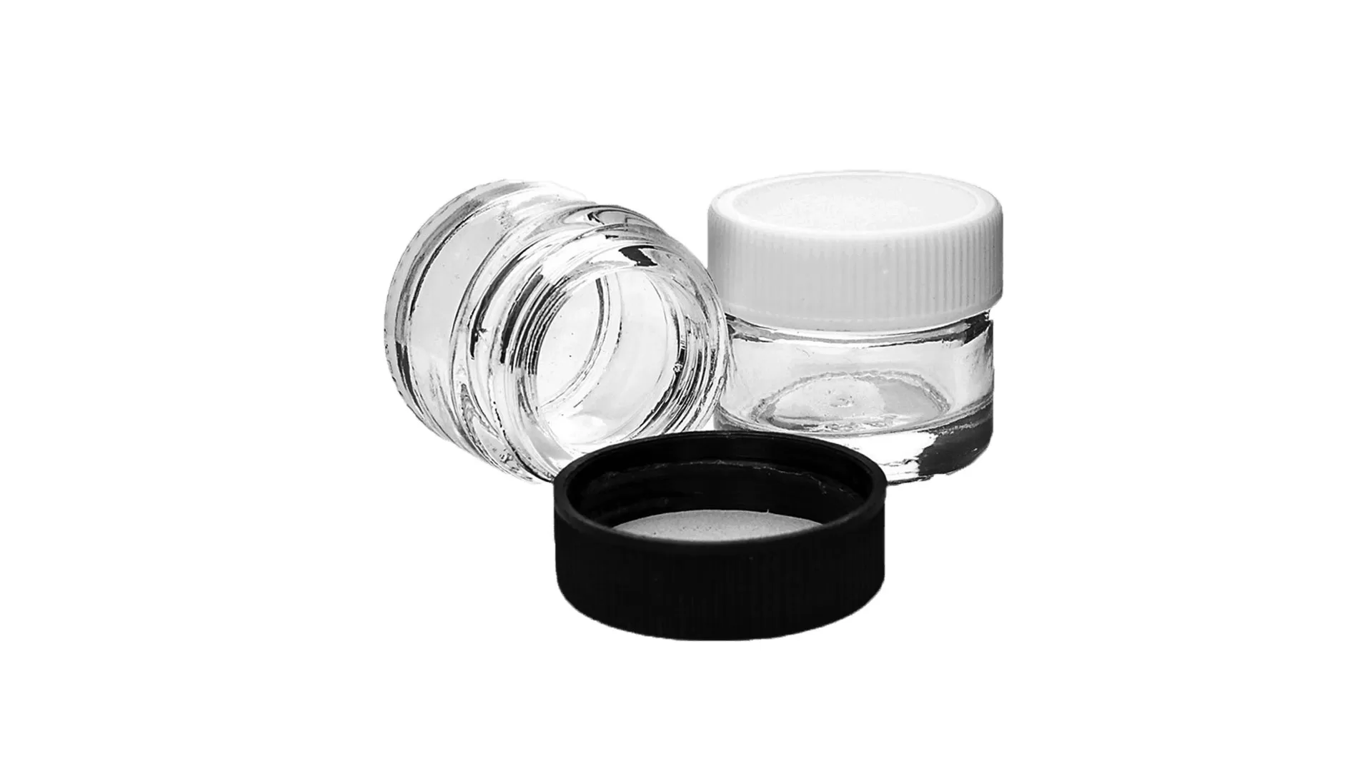 Glass concentrate containers feature a secure, leak proof snap cap lid that is easy to operate atop a light, strong glass container body.