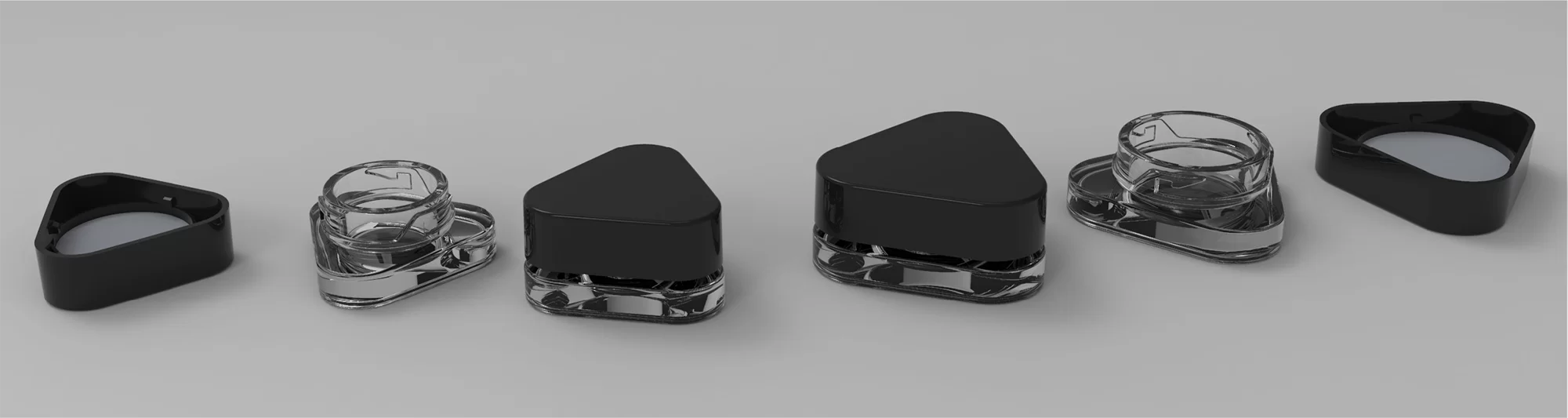 Our Tri Qube patent pending 5ml concentrate jar is made of the highest quality premium glass. It has a child -resistant square cap. Custom printing on jars is available. Please call for details.