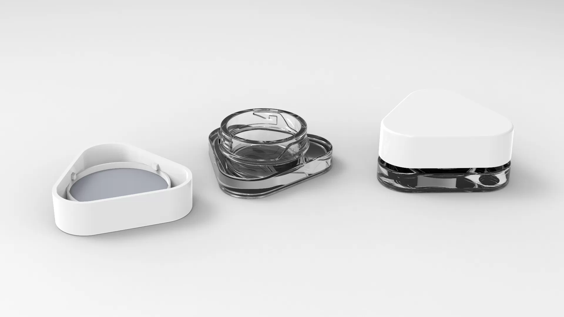 Our Tri Qube patent pending 9ml concentrate jar is made of the highest quality premium glass. It has a child -resistant square cap. Custom printing on jars is available. Please call for details.